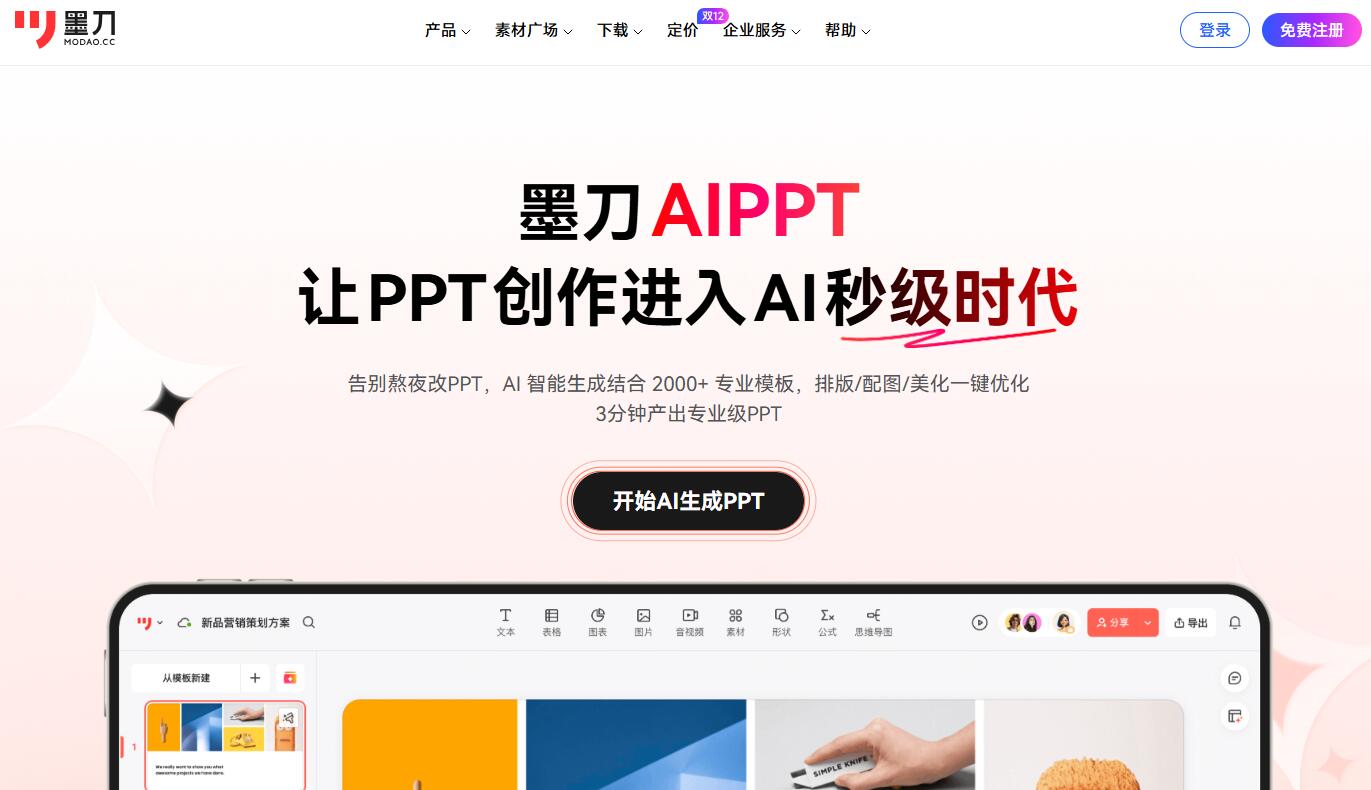 墨刀AIPPT是一个强大的PPT生成器,用户输入一句话,一个主题,它就能快速地生成PPT,而且支持多种格式文档,如word、pdf、txt、markdown等文档,将其转换成PPT的大纲,生成PPT的章节,还支持多场景模板的匹配,无论你是演讲、汇报或者展示等场景,均能生成满意的PPT。